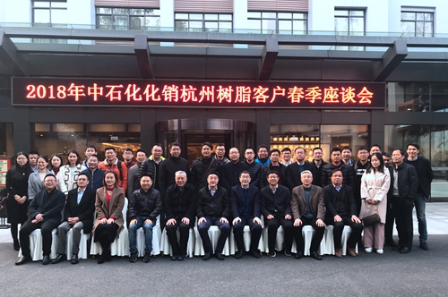 3月21日下午,中石化化銷杭州樹脂客戶春季座談會在杭州六通賓館順利召開,此次會議由控股集團子公司明日農塑、新光公司聯合組織,中石化杭州代表處、中石化杭州地區各主要客戶單位合計40余人參加會議。中石化華東公司樹脂部經理陳斌康出席會議,控股集團董事長韓新偉、資深顧問陸躍翔到會合影留念并出席招待晚宴。
