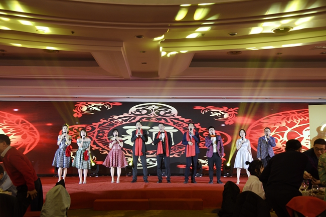 控股集團班子成員一同上臺,舉杯敬酒,祝福大家新年快樂,祝愿明日控股明天會更好,歡笑聲、干杯聲、祝福聲匯成了一片歡樂的海洋。大家互道新春快樂,暢談豐收成果,展望未來憧憬,臉上喜悅、口中祝福渾然融為一體,交相輝映。