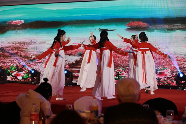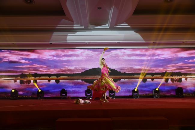 觥籌交錯中,大家一邊相互交流,一邊欣賞精彩的節目。朗誦《嬗變·日月新天》娓娓道來,道出明日控股20年的變換歷程;古風舞《浪人琵琶》舞姿妖嬈,展現了似水的柔情;對唱《不染》清新優雅,唱出人們心底的純凈夢;獨唱《光輝歲月》情深意切,表達對明日美好未來的祝愿……